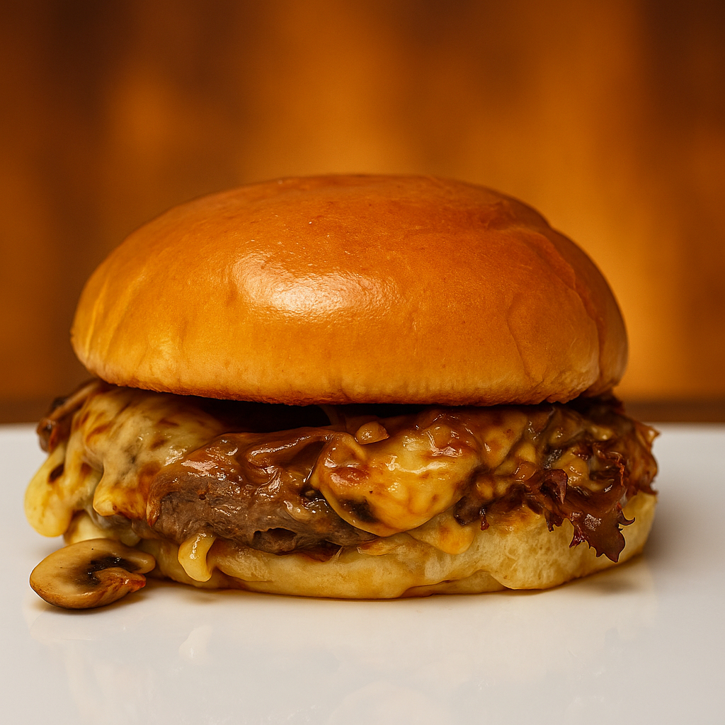 لحم 150غ، خس فرنسي، جبنة شيدر، بصل، فطر، عسل، مخلل