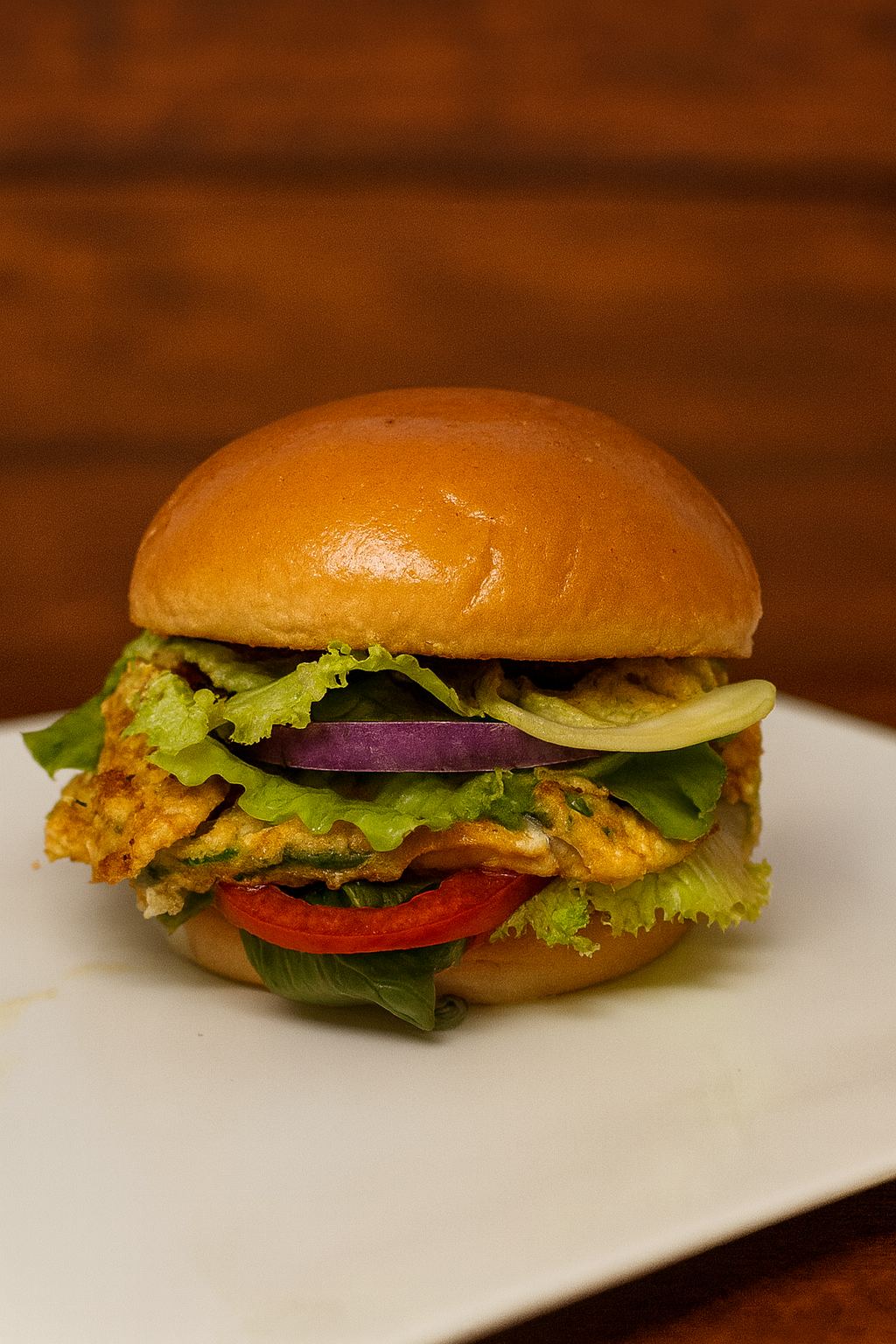 دجاج كريسبي، كتشب، مايونيز، خس، مخلل
